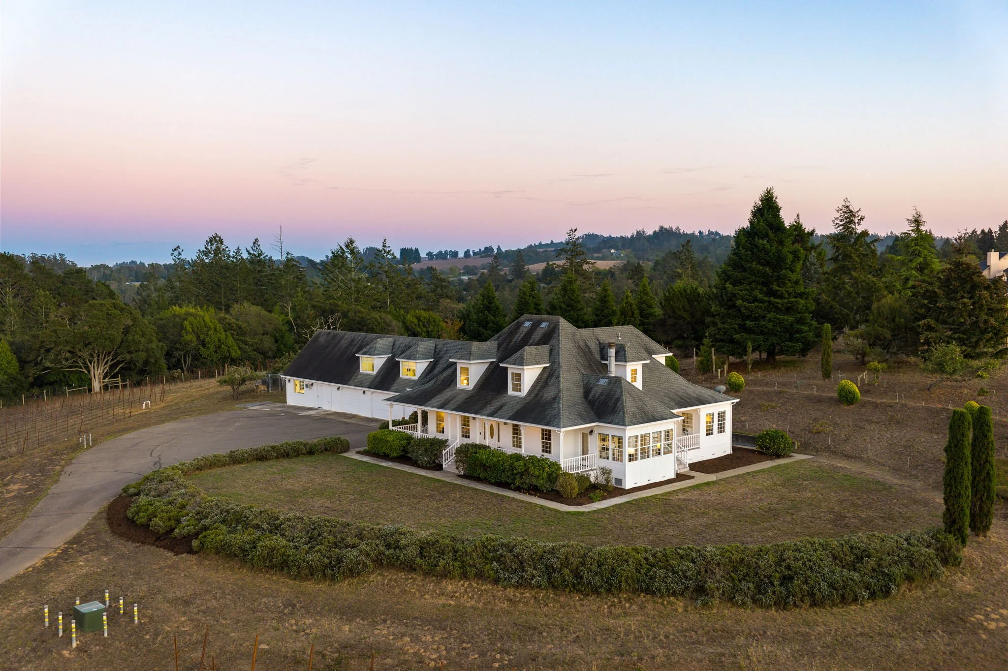Situated at the apex of a prominent West County hilltop, this exceptional 13-acre property showcases breathtaking views of Sebastopol’s rolling hills, world-renowned vineyards, and the distant Mayacamas Mountains. Upon entering the stately residence, you’re greeted by a charming covered front porch, rich hardwood floors, and a grand staircase that immediately conveys timeless character. With over 3,500 square feet of living space, this refreshed home provides an ideal canvas for you to bring your one-of-a-kind estate vision to life. The main level features an expansive primary suite, multiple living areas, and two versatile bonus rooms, while upstairs, three additional bedrooms and two full bathrooms offer generous accommodations for family and guests. An attached three-bay garage and workshop—encompassing approximately 1,700 square feet—deliver abundant storage and workspace, with a finished area above that provides even greater flexibility.