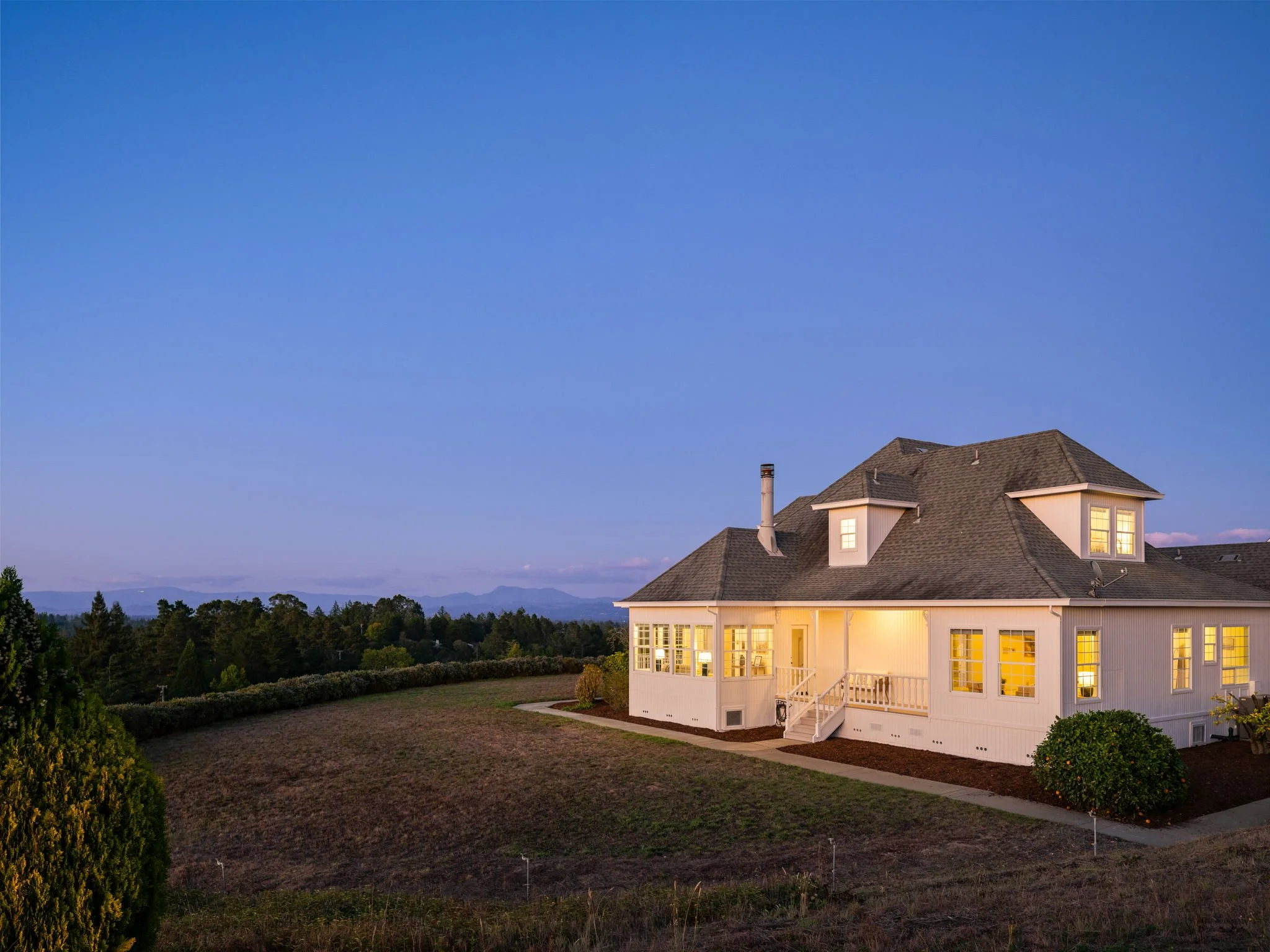 Situated at the apex of a prominent West County hilltop, this exceptional 13-acre property showcases breathtaking views of Sebastopol’s rolling hills, world-renowned vineyards, and the distant Mayacamas Mountains. Upon entering the stately residence, you’re greeted by a charming covered front porch, rich hardwood floors, and a grand staircase that immediately conveys timeless character. With over 3,500 square feet of living space, this refreshed home provides an ideal canvas for you to bring your one-of-a-kind estate vision to life. The main level features an expansive primary suite, multiple living areas, and two versatile bonus rooms, while upstairs, three additional bedrooms and two full bathrooms offer generous accommodations for family and guests. An attached three-bay garage and workshop—encompassing approximately 1,700 square feet—deliver abundant storage and workspace, with a finished area above that provides even greater flexibility.